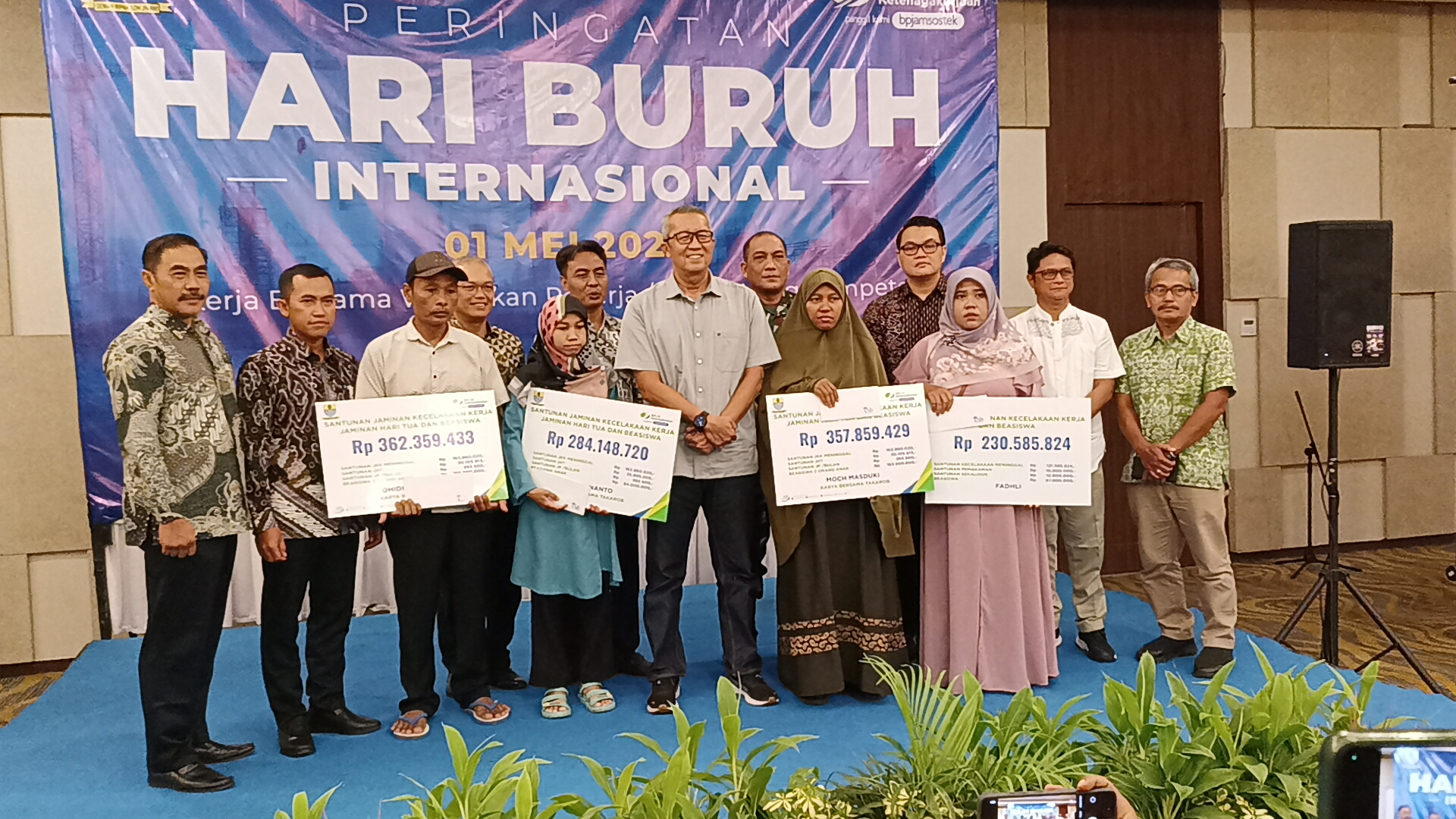 Untuk diketahui pada kesempatan tersebut, BPJS Ketenagakerjaan cabang Cirebon menyerahkan santunan kepada ahli waris atau keluarga korban kecelakaan kerja yang terjadi pada 9 April 2024 lalu. (Cepy)