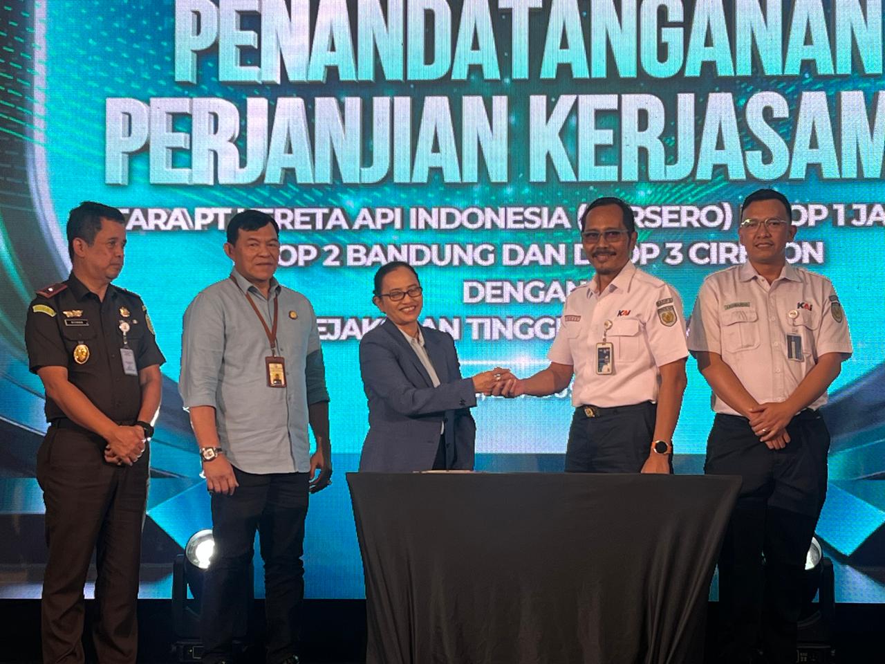Kerjasama tersebut ditandatangani oleh Kepala Daop 1 Jakarta Yuskal Setiawan. Kepala Daop 2 Bandung Takdir Santoso dan Kepala Daop 3 Cirebon Dicky Eka Priandana serta Kepala Kejaksaan Tinggi Negeri Jawa Barat Katarina Endang Sarwestri SH., MH., pada Kamis, 29 Agustus 2024 bertempat di Ruang Feeder Barat Stasiun Bandung.