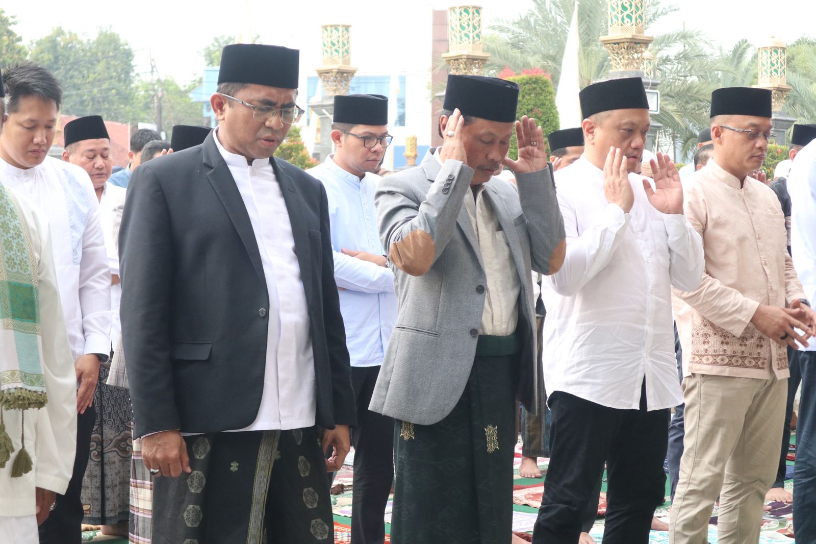 CIREBONWARTANEWS.COM, Cirebon – Wali Kota Cirebon, Effendi Edo, bersama Wakil Wali Kota Hj Siti Farida Rosmawati, Sekretaris Daerah H Agus Mulyadi, serta sejumlah pejabat dan kepala perangkat daerah, melaksanakan salat Idulfitri di Masjid At-Taqwa Kota Cirebon, Senin (31/3/25) pagi.