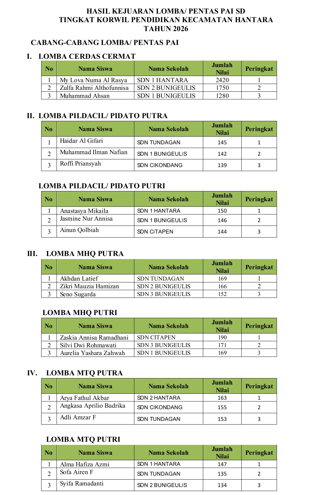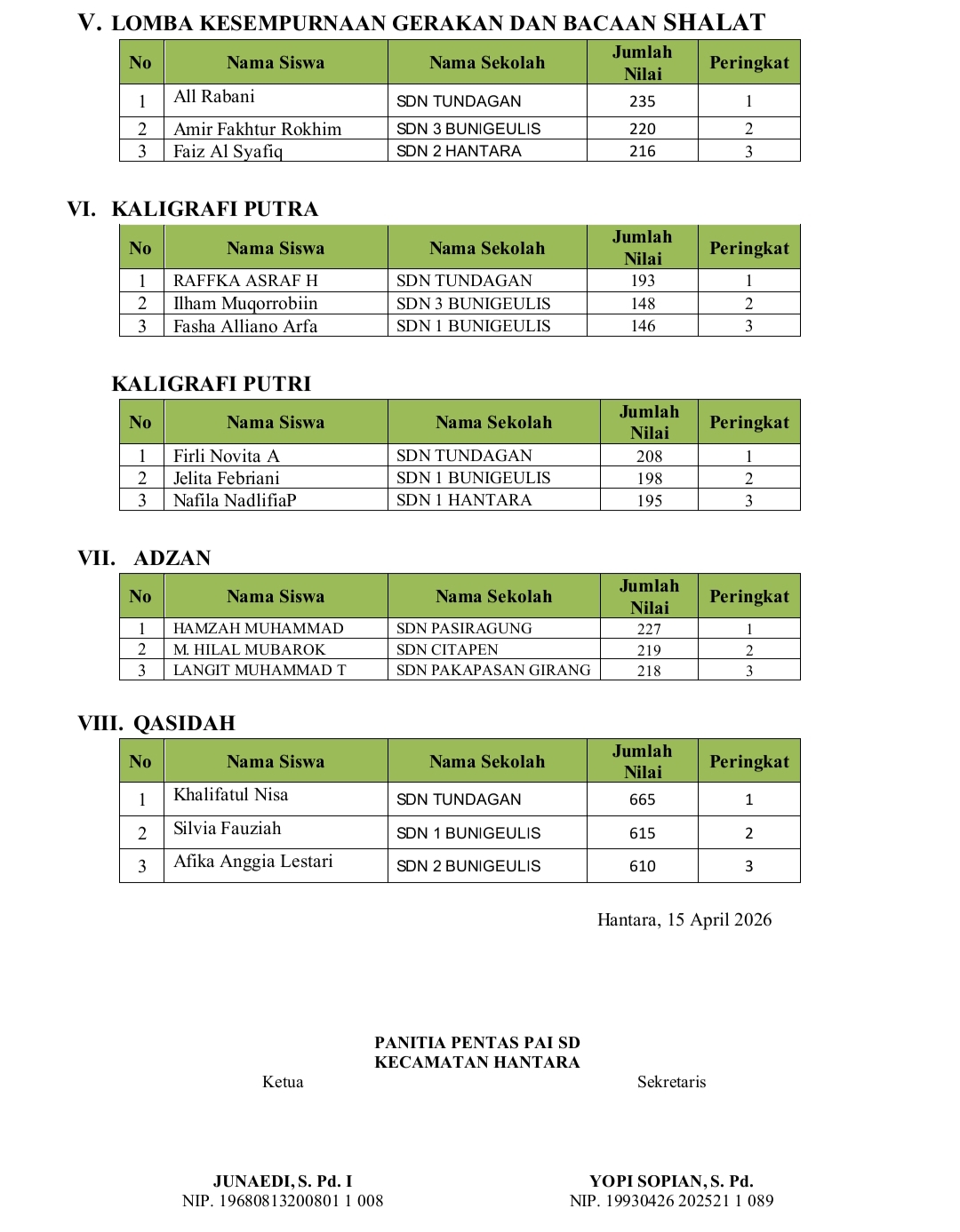 Sementara itu, Ketua KKG PAI Kecamatan Hantara, Ust. Junaedi, S.Pd.I., didampingi Wakil Ketua Panitia, Ono Rukmana, M.Pd., menyampaikan rasa terima kasih kepada Bapak Pendais Hantara atas dukungannya, serta SDN Tundagan yang telah memfasilitasi tempat lomba.